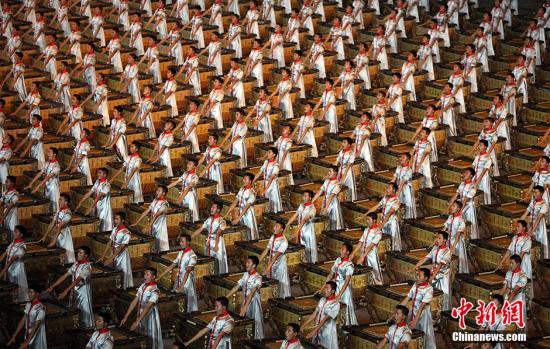 资料图:2008名鼓手一边击缶,一边吟诗。中国的“博”与“大”被展示得淋漓尽致。
