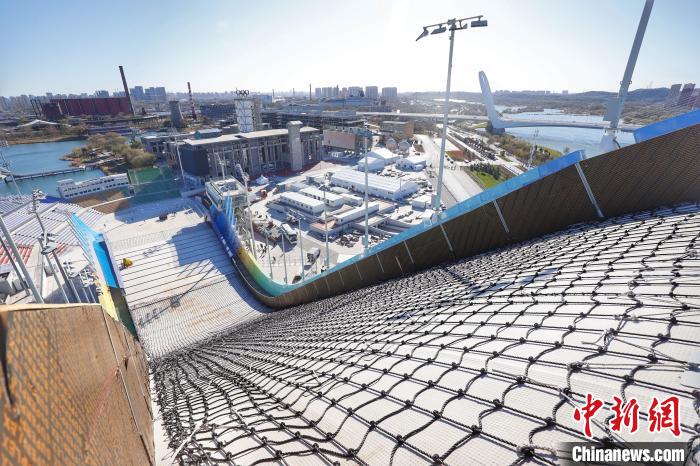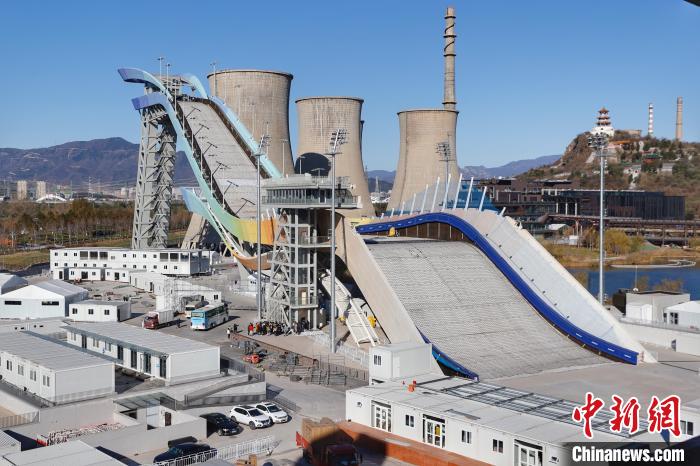 这是记者11日从“北京冬奥会场馆巡礼”主题采访活动中获悉的。 2019年10月31日,首钢滑雪大跳台作为北京2022年冬奥会北京赛区第一个新建比赛场馆建设完成。 北京市重大项目建设指挥部办公室城区场馆建设处副处长宋嘉业表示,首钢滑雪大跳台是北京2022年冬奥会北京赛区内第一个完工的新建场馆,也是唯一的雪上比赛场地,将承办北京2022年冬奥会滑雪大跳台比赛项目,北京冬奥会期间将会有四块金牌在这里产生。 目前,首钢滑雪大跳台主体、裁判塔和固定看台部分及配套附属建筑已全部完工,场馆运行团队已入驻后院综合楼办公,正在开展临时设施施工工作。 系世界首例永久保留滑雪大跳台 首钢滑雪大跳台由赛道、裁判塔和看台区域三部分组成,赛道长164米,赛道最宽处34米,最高点60米。比赛形式为,选手从高处疾速下滑,通过大跳台起跳,进行高空空翻、回转等技术动作。 中新社记者 富田 摄" style="border-width: 0px; border-style: initial; vertical-align: middle; max-width: 700px; cursor: pointer;">