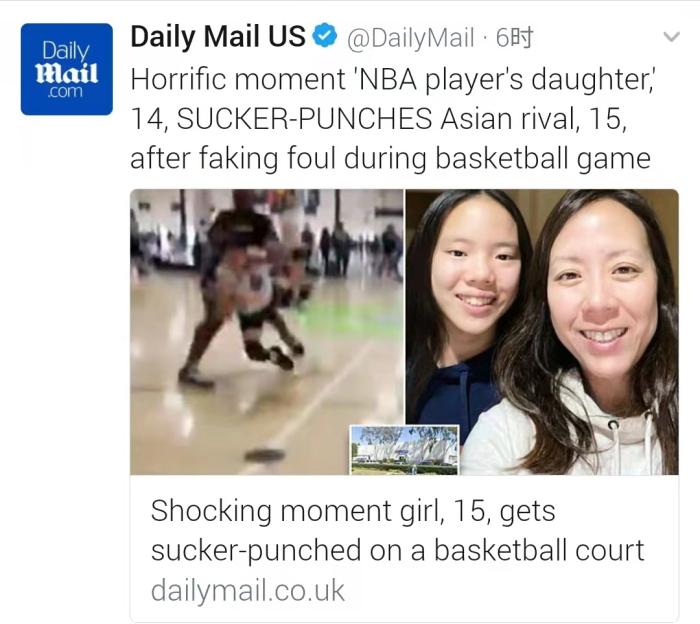 近日,多家外媒报道了一条令人气愤的新闻。在美国的一场青少年篮球比赛中,一名15岁华裔女孩被一名黑人女孩袭击,痛苦地倒在地上,而施暴者竟然很可能是在母亲的煽动下动手的。