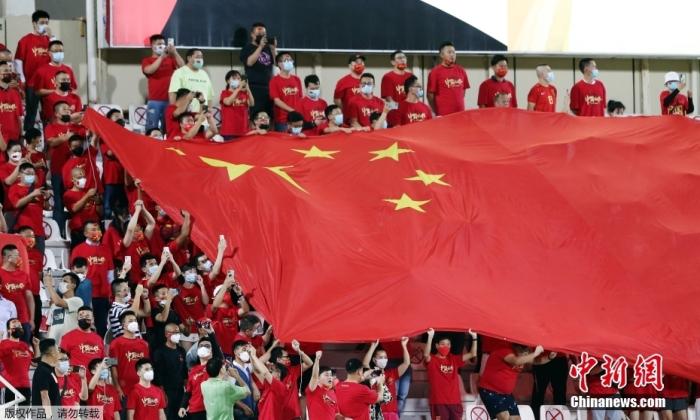 北京时间11月11日23:00,世预赛亚洲区12强赛B组第5轮,国足1:1阿曼。图为中国球迷到场为国足助威。