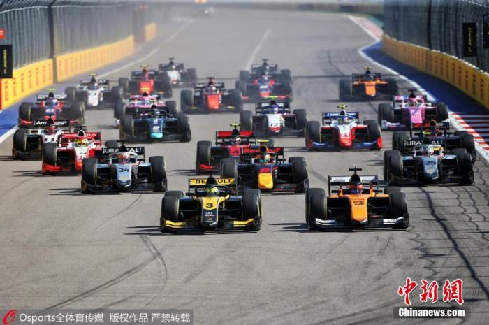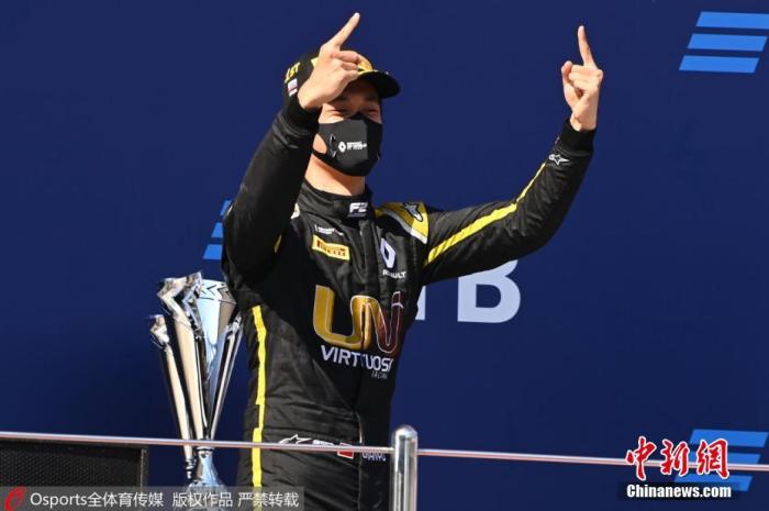 资料图:中国车手周冠宇拿到其职业生涯首个F2分站赛冠军。他也成为F2历史上首位夺冠的中国车手。图片来源:Osports全体育图片社