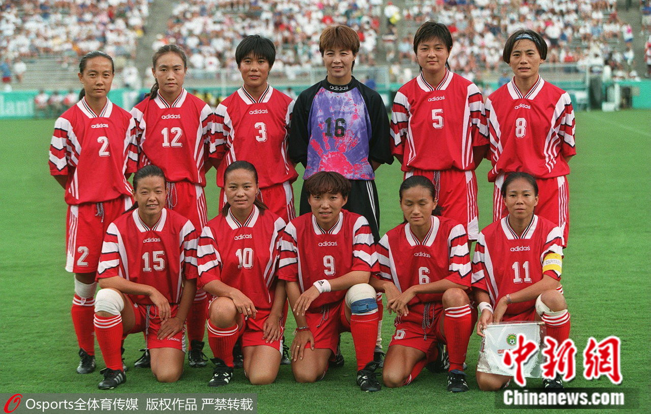 水庆霞(8号)在1996年亚特兰大奥运会女足比赛中首发。图片来源:Osports全体育图片社
