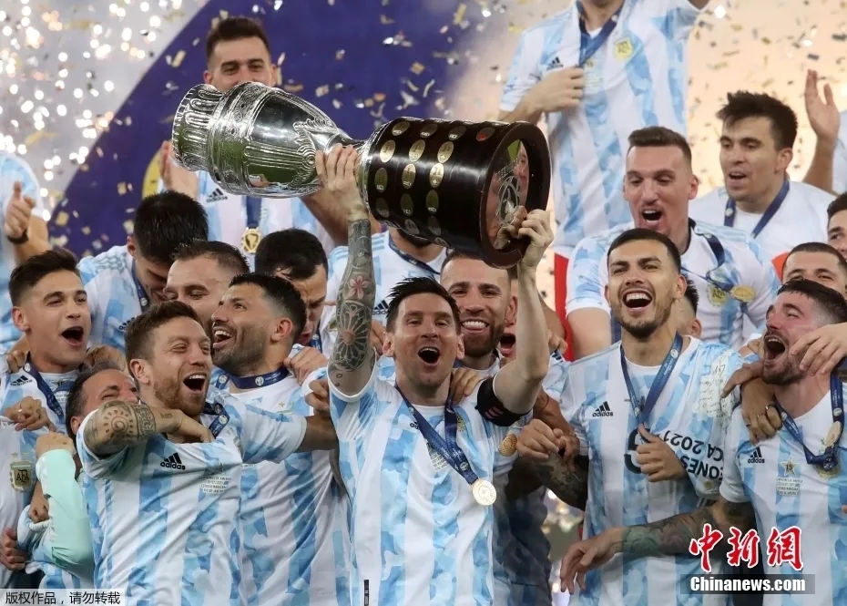今年7月,阿根廷队在美洲杯决赛中1:0战胜宿敌巴西队夺得冠军,梅西获得美洲杯金球奖和金靴奖,这是阿根廷队时隔28年再次问鼎美洲杯。 两个月后,在美洲杯冠军庆典上,梅西和队友们一一拥抱,而在等待举起冠军奖杯时,他流下了眼泪。 “我们为此等待了很久,没有比与球迷一同庆祝更好的方式了。回想过往的经历,这是很特别的时刻。”34岁的梅西这样说。 这座奖杯对于梅西有着特别的意义,荣誉无数的他第一次获得成年国家队的重要杯赛冠军。