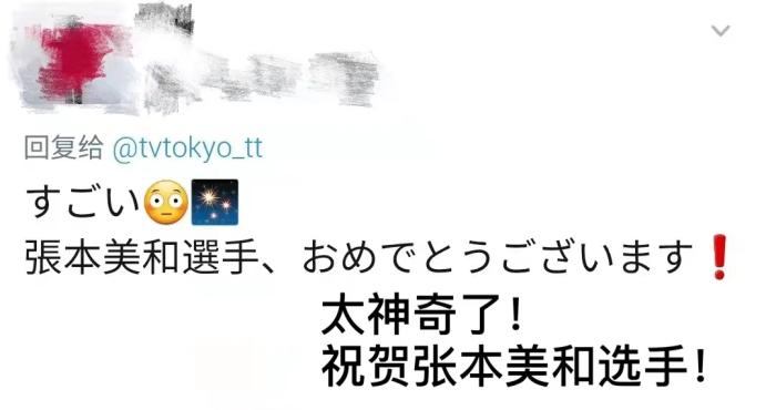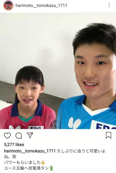 张本智和社交媒体截图。
