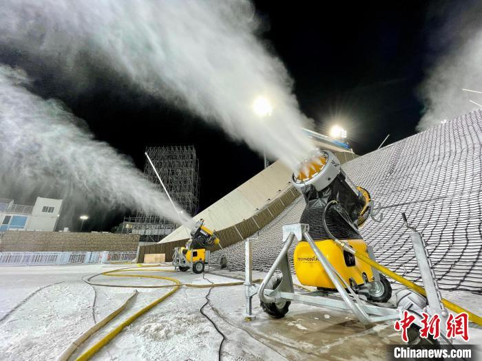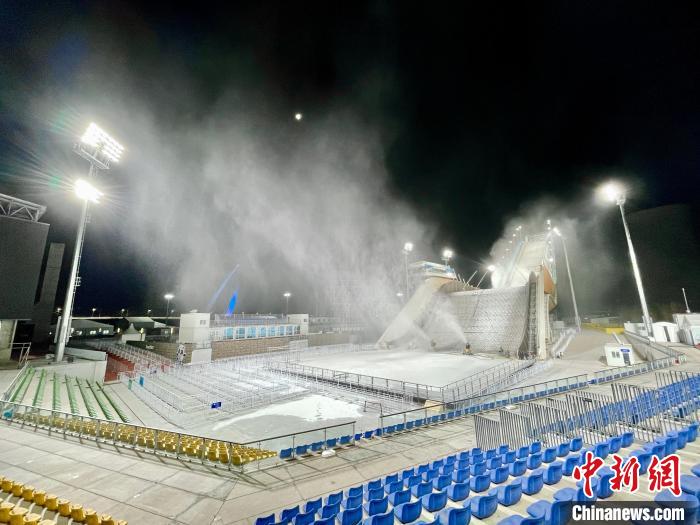 位于北京市石景山区的首钢滑雪大跳台12日正式启动造雪工作。 首钢滑雪大跳台场馆运行团队供图
