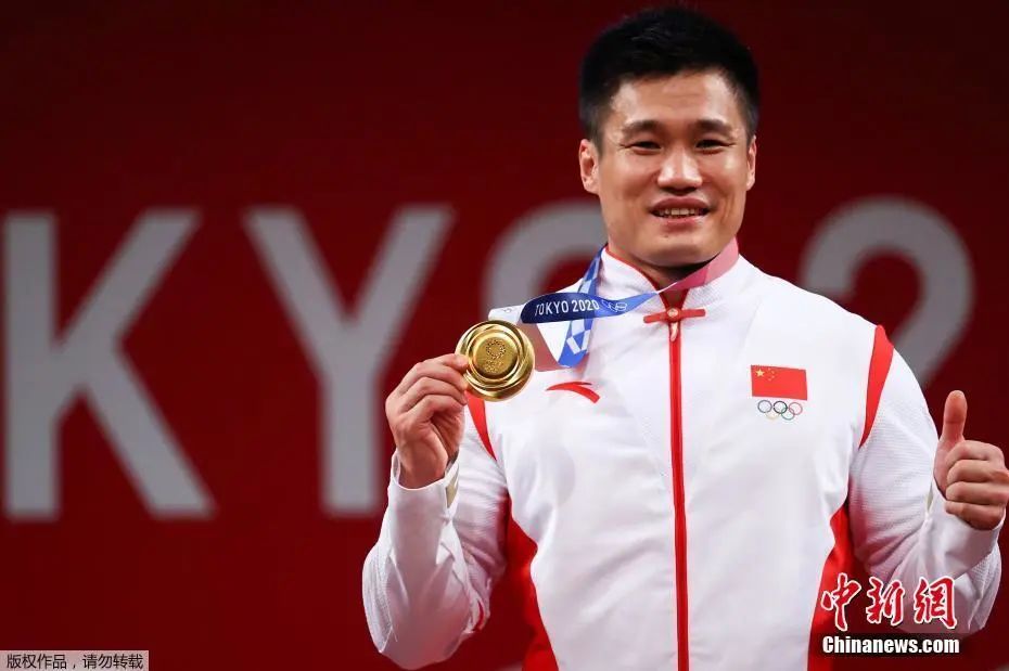资料图:2021年7月31日,东京奥运会男子举重81公斤级决赛中,37岁的中国选手吕小军以抓举170公斤、挺举204公斤、总成绩374公斤的成绩夺得冠军,其中抓举、挺举、总成绩均打破奥运纪录。这是中国代表团本届奥运会的第21金。