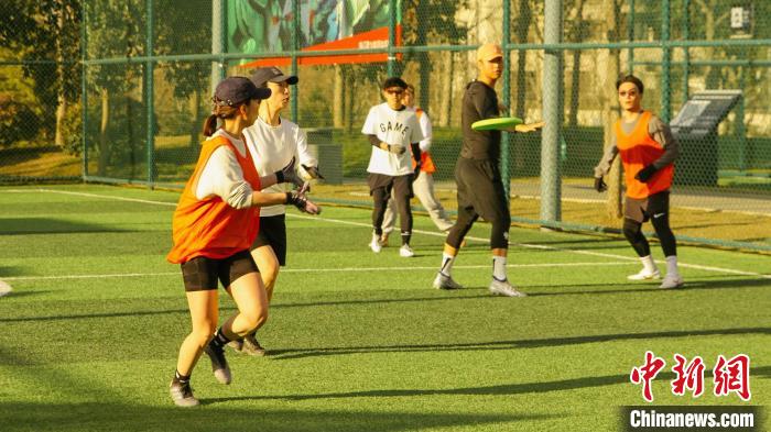 中新网西安5月1日电 (记者 党田野)“我们队员里有乐手、白领、老师等职业,只要大家有时间,肯定会聚在一起练习飞盘,毕竟这是一项令人‘上瘾’的运动。”超光速飞盘队西安分部队长葛新在接受记者采访时表示,随着气温攀升,他和队友们的飞盘训练开始了一周多练模式。 葛新介绍,飞盘运动最早在欧美地区流行,由于上手快、对抗性不高,使其迅速成为老少咸宜的家庭运动。近年来,飞盘运动在北京、上海、西安等中国城市迅速发展,越来越多的人开始接触飞盘运动。