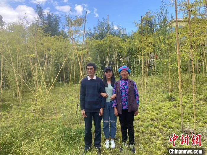 何巫呷(中)和父母。 盐源县融媒体中心供图