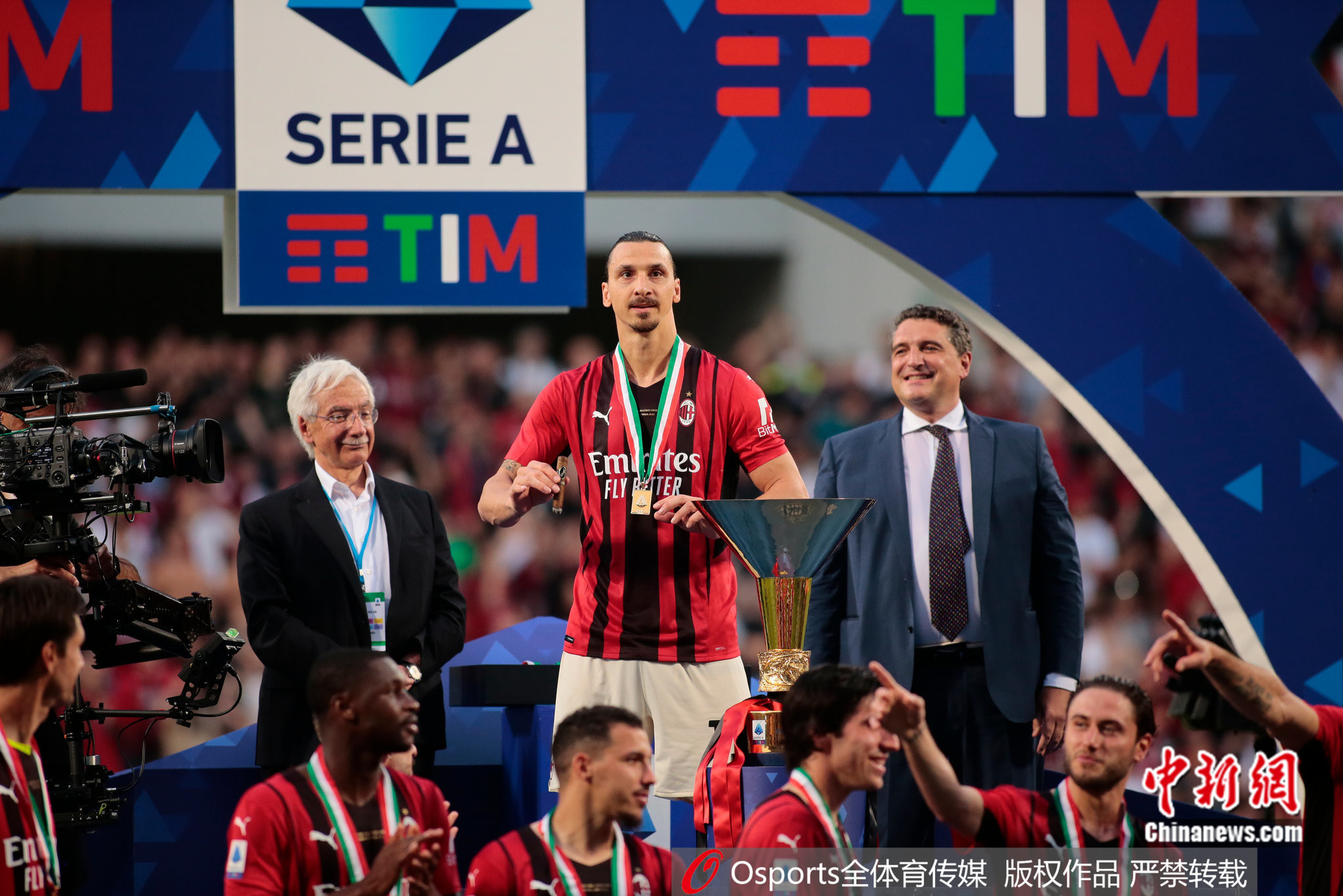 老将伊布再次捧得意甲冠军奖杯。图片来源:Osports全体育图片社