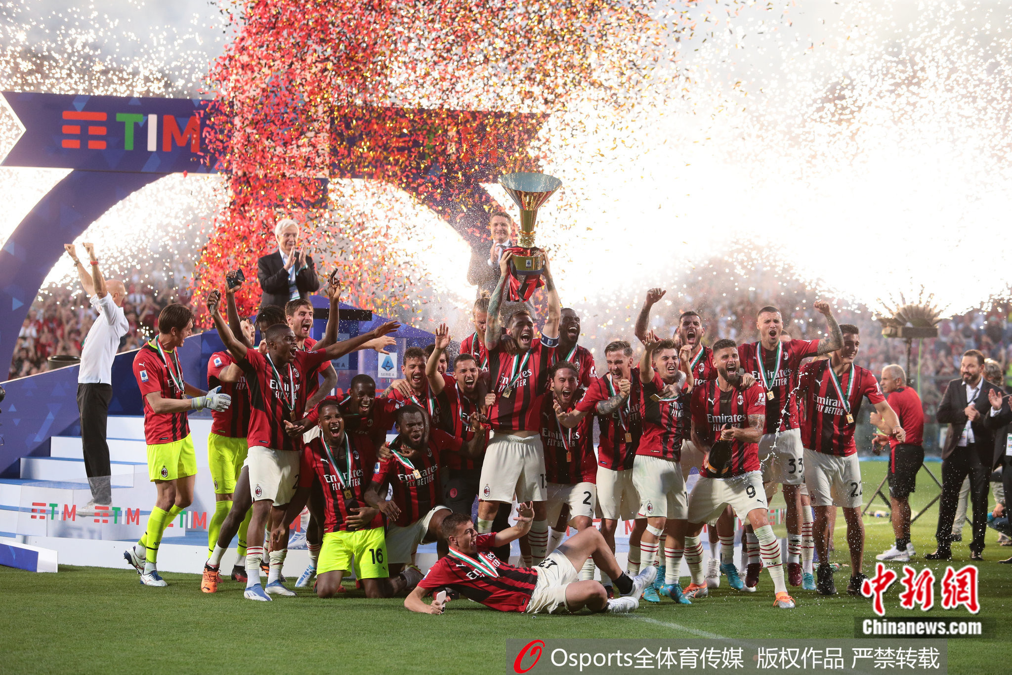 AC米兰全队捧杯。图片来源:Osports全体育图片社