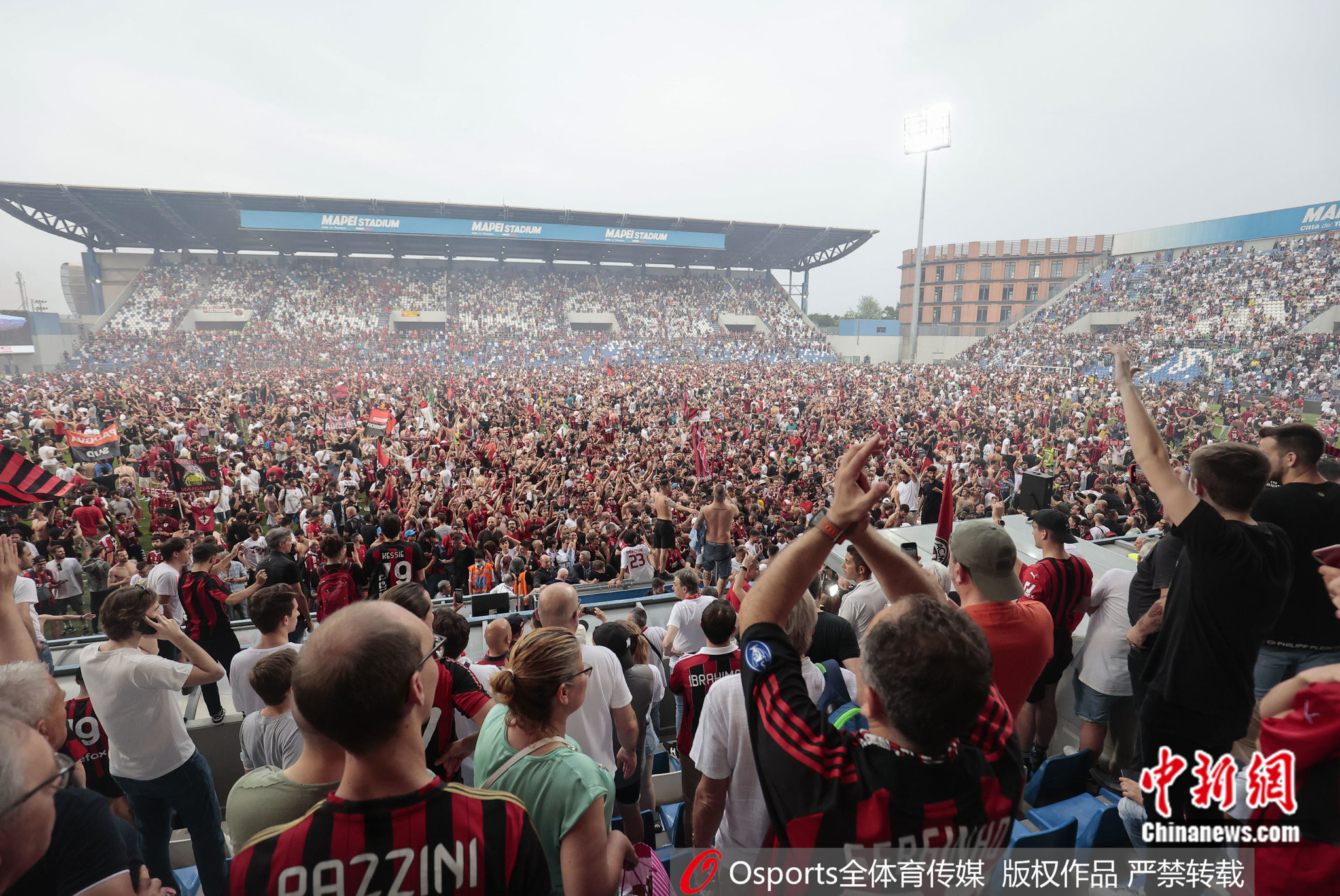 现场的AC米兰球迷庆祝夺冠。图片来源:Osports全体育图片社
