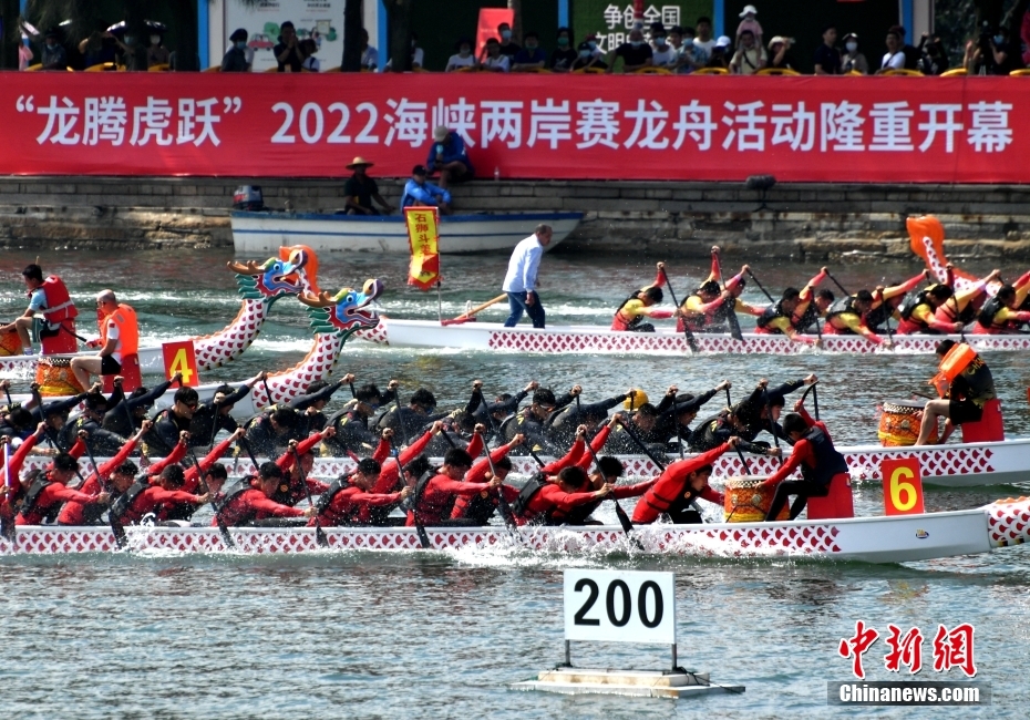 鼓声三下红旗开,两岸龙舟勇争先。3日正逢端午佳节,“龙腾虎跃”2022海峡两岸赛龙舟活动在厦门集美龙舟池畔举行开幕式。 中新社记者 吕明 摄" style="border-width: 0px; border-style: initial; vertical-align: middle; max-width: 700px; cursor: pointer;">
