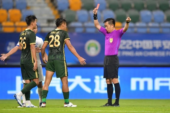 相比较而言,北京国安的张呈栋直红则是战术犯规,是作为最后一个防守球员对形成单刀球的奥斯卡背后犯规,这反而是正常的一张红牌。在这场比赛中,郭皓也是两黄变一红被罚下。