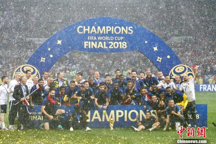 俄罗斯世界杯决赛法国队4:2战胜克罗地亚,“高卢雄鸡”时隔20年再次捧起大力神杯。中新社记者 富田 摄