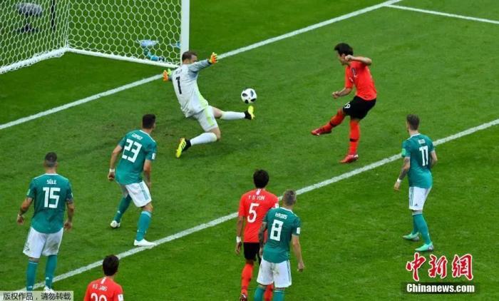 俄罗斯世界杯上,韩国队金英权攻破德国队大门。