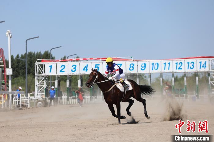 开幕式现场,《草原儿女祝福您》《赛里木湖的云》《舞动新时代》《站在草原望北京》《我们都是追梦人》等歌舞为现场观众献上了一场视觉盛宴。 当日,随着一声嘶鸣,首个开赛项目速度赛马1000米开启角逐。数十匹“战马”如离弦的箭竞相奔驰,赛道沙尘飞扬。拥有14年马术经验的骑手潘吉甫取得第二名,他告诉中新网记者,由于天气炎热其马匹稍有不适。希望自己在新疆第十届少数民族传统体育运动会上再创佳绩。
