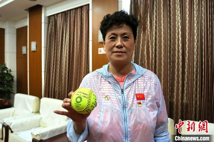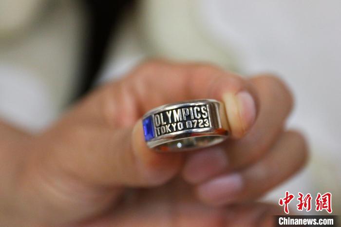 于志玲展示东京奥运会垒球项目纪念戒指。 崔景圣 摄