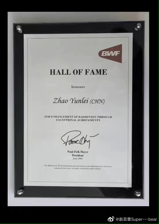 赵芸蕾通过微博晒出了自己的名人堂证书,并表示:“感谢国家的培养、恩师的提携以及每一位球迷的陪伴和支持。我会带着这份殊荣,继续不遗余力推广羽毛球运动和青少年羽毛球教育,感谢大家!” 对于赵芸蕾进入国际羽联名人堂,中国羽毛球协会主席张军此前表示:“赵芸蕾作为羽毛球界的杰出代表,期待她能继续带着对这项运动的热爱,充分发挥自身的优势,为世界羽毛球事业的蓬勃发展添砖加瓦。同时,希望年轻的运动员能够以前辈为榜样,全力拼搏,初心不改,勇创佳绩。” 赵芸蕾大赛成绩一览: 2010年,获得广州亚运会女双冠军 2011年,获得伦敦世锦赛混双冠军 2012年,获得伦敦奥运会女双和混双两项冠军 2014年,获得哥本哈根世锦赛女双、混双冠军 2014年,获得仁川亚运会混双冠军 2015年,获得雅加达世锦赛女双、混双冠军 2016年,获得里约奥运会混双季军