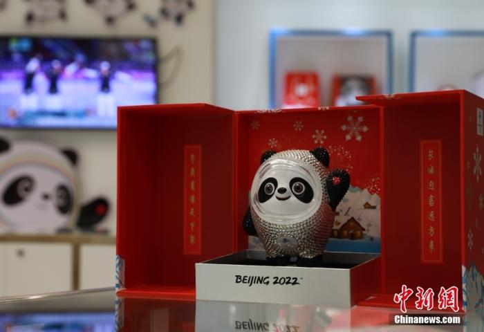 钻石版“冰墩墩”样品亮相河南郑州冬奥特许零售店,进行为期三天的展示。据了解,钻石版“冰墩墩”高约16cm,底座直径约10cm。全身镶钻2700余颗,限量发行2022个。中新社记者 阚力 摄