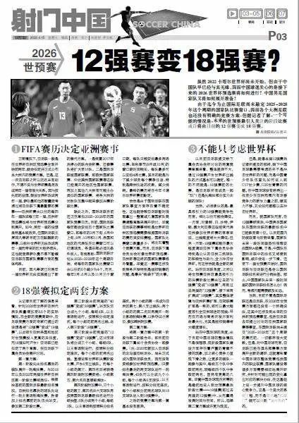 2026世预赛 2026年世界杯亚洲区预选赛赛制在8月1日已经最终敲定。正如记者于今年4月15日在本报所披露的那样,12强赛最终变成了18强赛,而且世预赛依然将与2027年亚洲杯预选赛合二为一,延续2019年、2023年两届亚洲杯的竞赛方案。对中国男足而言,在12强赛扩军成为18强赛之后,进军世界杯的机会与希望究竟是更大还是更小?值得中国足球界很好地应对并拿出相应的对策。 12强赛变18强赛大势所趋