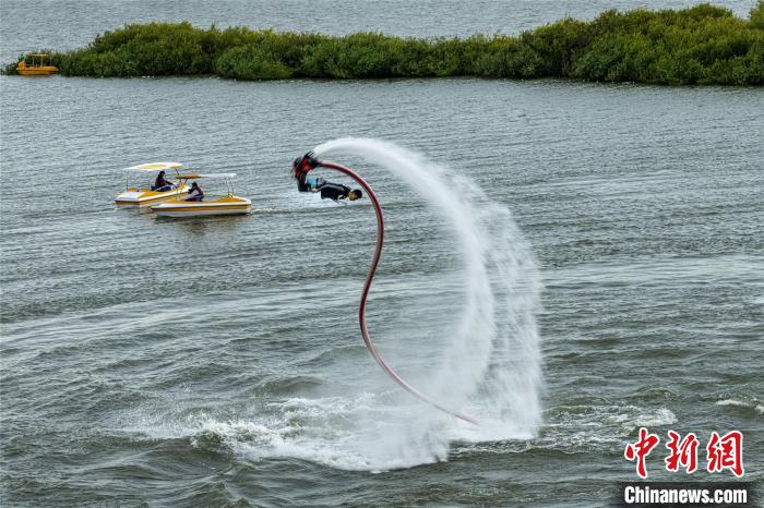 比赛现场的水上飞人表演。 魏波 摄