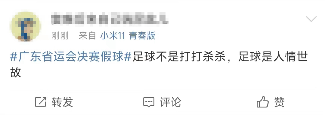 中新网北京8月8日电(刘星晨)8日,一则 #广东省运会决赛假球# 的话题词条,在很长时间占据微博热搜高位。截止至发稿时,此话题阅读量突破1.4亿,近9000人次参与讨论。 从竞技体育角度而言,本场比赛并不算级别很高的赛事,如果不出现特殊情况,很大程度上不会吸引如此多的舆论关注。