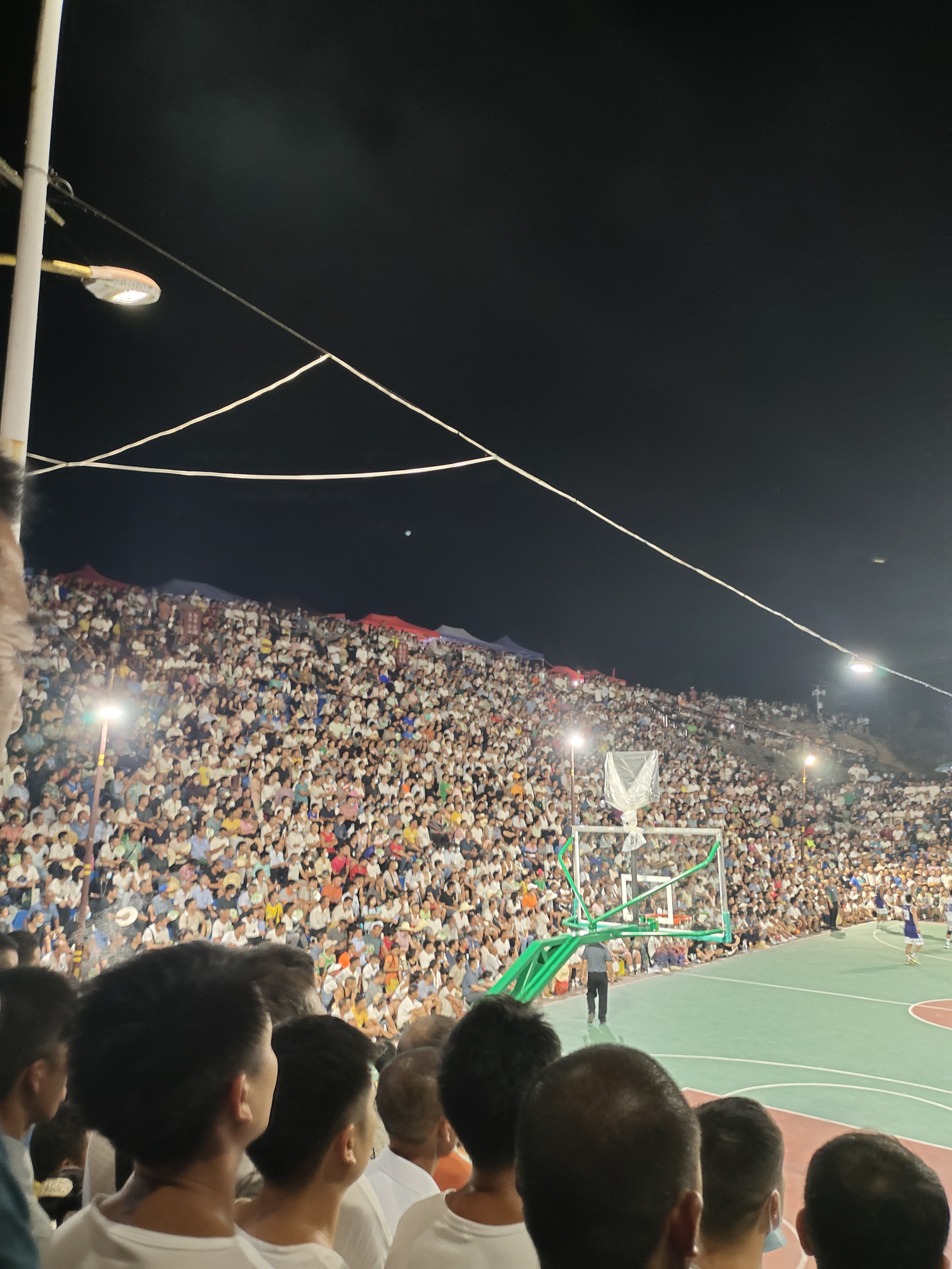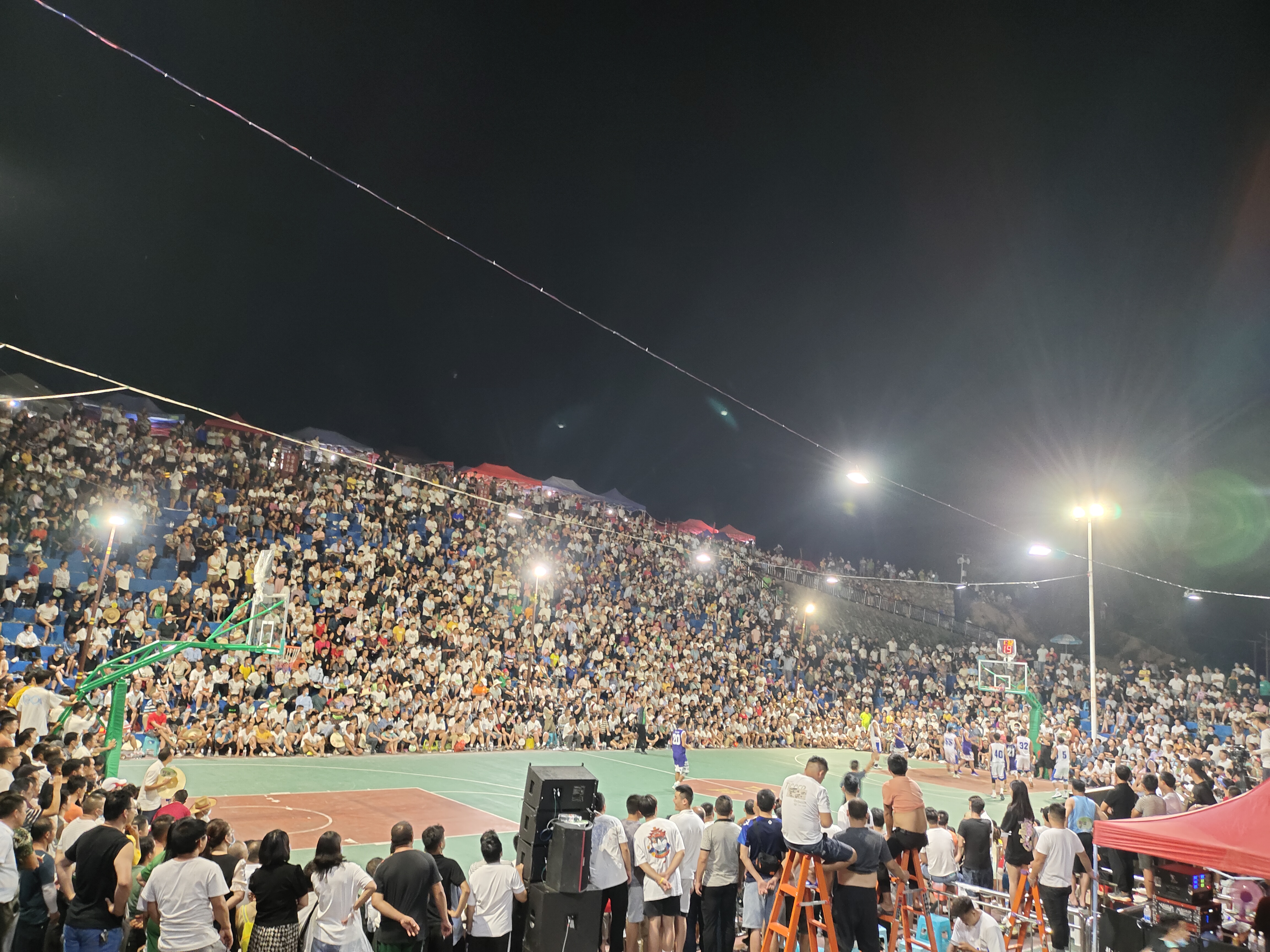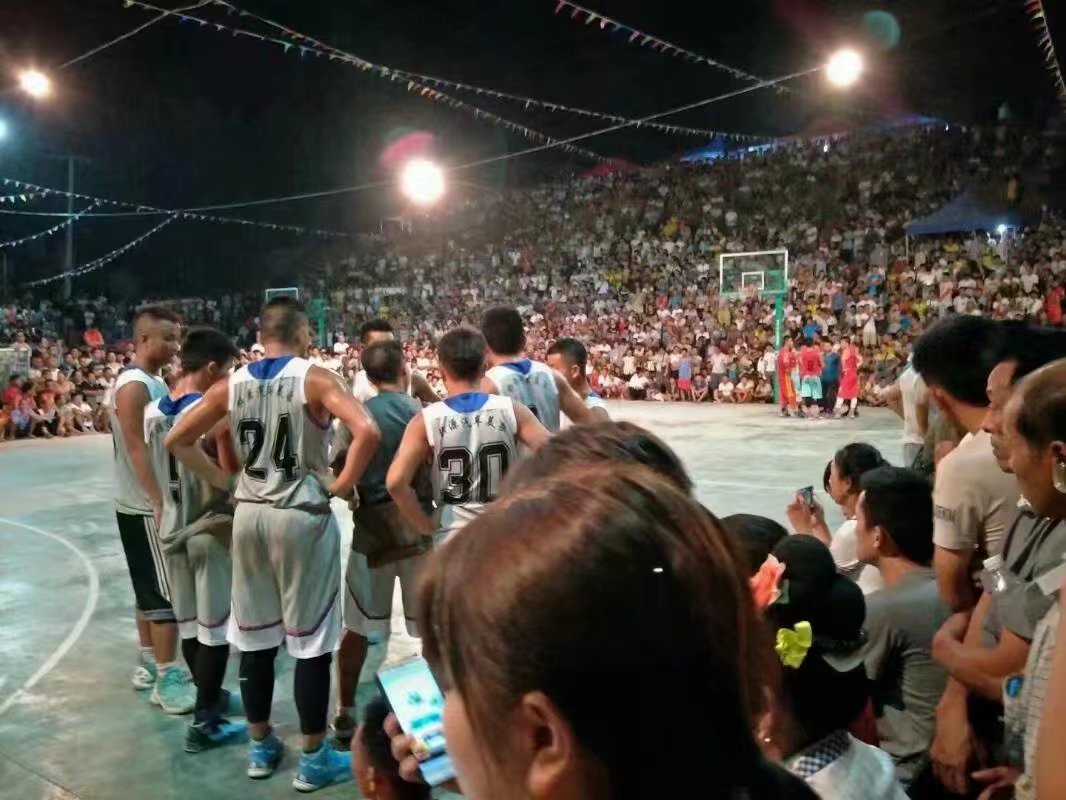 “看了三天三夜” 在不少当地人口中,“天亮文化”十分出名,顾名思义,即比赛会一直打到天亮。 今年的“吃新节”篮球赛,有176支篮球队参与其中,比赛场次的增多让赛程更加密集。 “我几乎看了三天三夜。白天回家睡一会,又跑过去看比赛。”回想起今年“吃新节”看比赛时的场景,文武依旧有些激动。 在接受采访时,文武恰好在球场边看比赛。他介绍道,台盘乡不同的村有各自的传统节日,在“吃新节”之外,也有“七月半”“走亲节”等。 据张寿双介绍,如果球队数量多或是有争夺冠亚军的比赛时,篮球赛会持续很长时间。“耗时最久的一次,从第一天早上打到了第二天凌晨。”他这样回忆道。