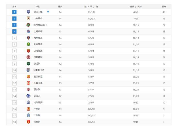 北京时间8月22日,中超第14轮继续进行:梅州客家VS武汉三镇。上半场第9分钟,武卡诺维奇破门;第23分钟,马尔康进球;第36分钟,谢鹏飞建功。最终,武汉三镇2-1击败梅州客家。 北京国安,迎战广州城。第8分钟,张稀哲建功;第39分钟,张玉宁点球不中;第77分钟,张玉宁再一次点球不中。之后,两队没有再取得进球。1-0,北京国安战胜广州城。 我们来看中超最新积分榜:武汉三镇40分,山东泰山36分,河南嵩山龙门27分,梅州客家23分,上海申花23分,北京国安22分,上海海港21分,成都蓉城21分…… 本轮,河南嵩山龙门2-2与武汉长江战平,山东泰山2-1击败成都蓉城。如此,河南嵩山龙门落后泰山9分、武汉三镇13分。河南队想要冲击前二,已经没有多大希望了。因此,中超不仅冠军之争稳定了下来,冠亚军也非三镇跟泰山莫属。两支球队将在9月14日直接交手,这场比赛无疑决定冠军走势。 最大的冷门,无疑是广州队创造的,他们在郑智的带领下,4-1重创深圳。而沧州雄狮又0-2输给了大连人。因此,广州队距离安全区仅有1分。我们再来看沧州雄狮与广州队的士气对比,后者很旺盛。所以,有郑智在,广州队保级的希望大增。 其实,中超保级大战的形势也明朗化了:广州城跟河北,极大概率是降级队伍。而广州跟沧州雄狮,则争夺一个上岸名额。相比较而言,河北这支球队降级,还让人惋惜。而广州城呢?看看本赛季他们的表现,恐怕鲜有人会觉得可惜。不过问题的关键点在于:这两支球队一旦降级,下赛季命运如何,是一个很大的未知。除了他们之外,还有几支球队的命运也不明朗。