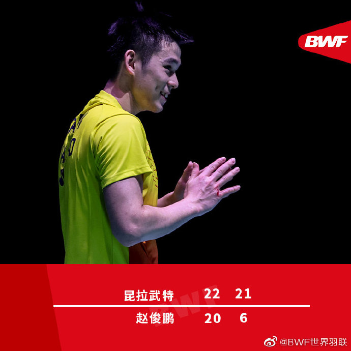 聚焦比赛 本场比赛,被誉为泰国羽毛球“天才少年”的昆拉武特,比赵俊鹏的世界排名高出了6位。双方在首局便开始纠缠。赵俊鹏凭借不断的前后调动在局中保持着1-2分的领先。局末,赵俊鹏的失误开始增多,加之对手昆拉武特打出一记运气球,赵俊鹏以20:22落败。 第二局比赛,或许受到首局遗憾失利的影响,抑或是对交换场地后的风向不适应,赵俊鹏在开局便被对手打出了12:1的攻击波,虽然此后他仍奋力追赶比分,但无奈双方分差过大。昆拉武特以21:6再胜一局,拿下比赛。