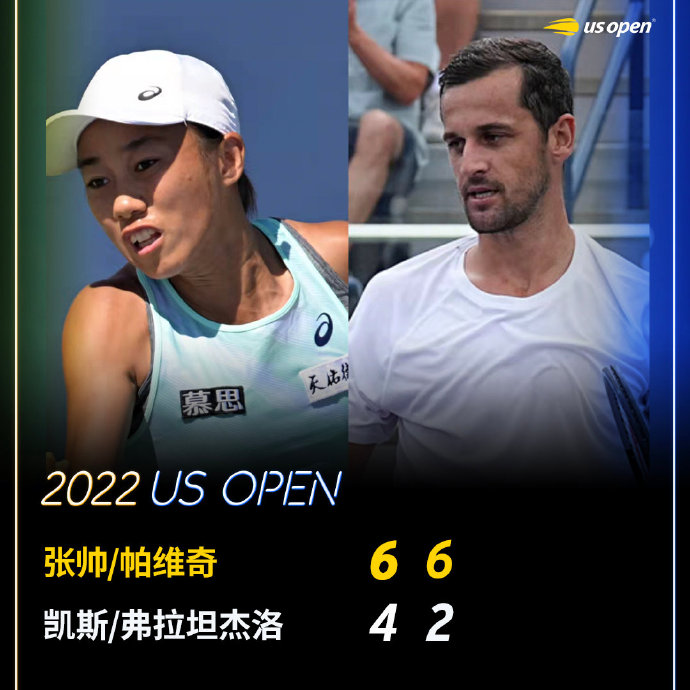 在刚刚结束的2022年美国网球公开赛混双第2轮比赛中,中国球员张帅搭档克罗地亚选手帕维奇,以6:4、6:2轻取凯斯/弗拉坦杰洛,晋级八强。在早些时候进行的女单第4轮比赛中,张帅0:2不敌12号种子高芙,止步16强。