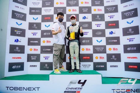 来自Blackjack二十一赛车的付震江稳健地完成了所有比赛,这是他第二次参加壳牌喜力F4方程式的比赛,变化的天气及潮湿路面上的驾驶对这位车手来说难度不小。但付震江依旧逐个环节慢慢提升,并四获组别季军。