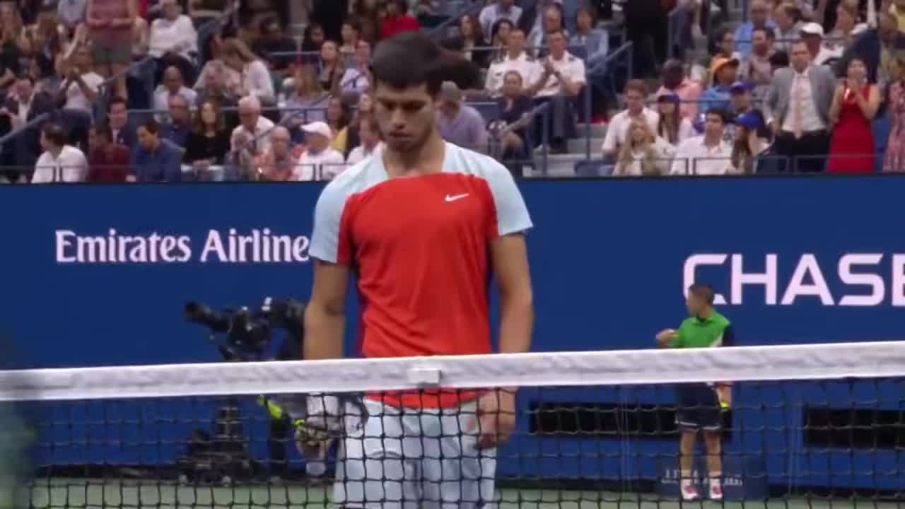 北京时间9月12日,2022年美国网球公开赛男单决赛,3号种子、19岁的西班牙天才少年阿尔卡拉斯以6-4、2-6、7-6(1)、6-3,总比分3-1战胜5号种子、挪威球员鲁德,职业生涯首次赢得大满贯冠军,并成为新科ATP男单世界排名第一。 这是第一次在大满贯决赛中,由两名从未登顶过世界第一的球员争夺大满贯首冠和世界第一的头衔。两人此前交手过两次,都是以阿尔卡拉斯获胜而告终。本届美网,阿尔卡拉斯接连经历三场五盘大战闯入决赛,鲁德则是在第二轮五盘淘汰29号种子保罗。 首盘比赛,双方一上来都略显紧张,前两局发球均送出破发点,但都化险为夷。鲁德在第三局网前和底线占据优势的情况下接连送出失误,阿尔卡拉斯主动上网再度逼出连续三个破发点,并在第二个破发点上接发抢攻成功兑现。鲁德在第四局浪费了一次破发机会,随后双方各自保发,阿尔卡拉斯6-4先下一城。 第二盘比赛,阿尔卡拉斯的小球战术频频被对手识破并化解,加上自身主动失误增多,鲁德在第六局和第八局两度完成破发,6-2扳回一城。 第三盘比赛,阿尔卡拉斯提升状态,开局拿到连续三个破发点,并成功兑现;鲁德则在第四局抓住对手过多的主动失误,实现回破。关键的第11局,鲁德经历了五次平分、两次拿到盘点,但都未能把握机会,最终在抢七中以1-7完败,阿尔卡拉斯7-6(1)赢得第三盘。 第四盘比赛,鲁德状态陷入低迷,第六局连续失误遭遇破发,阿尔卡拉斯将一局破发的优势保持到了赛末,最终以6-3赢得第四盘,也以总比分3-1击败鲁德,首夺大满贯男单冠军。 凭借这个冠军,19岁的阿尔卡拉斯成为了ATP历史上最年轻的男单世界第一,也是第28位男单球王,同时他成为了继莫亚、费雷罗、纳达尔之后第四位来自西班牙的男单世界第一。 相关阅读: 阿尔卡拉斯成新科世界第一,男子网球巨头时代终究还是要落幕了(澎湃新闻) 男子网球的历史上,终于诞生了又一位新的大满贯冠军。 9月11日凌晨打响的美网男单决赛,阿尔卡拉斯笑到了最后,夺得个人职业生涯首个大满贯的同时,也成为了ATP排名系统诞生以来,第28位坐上世界第一宝座的球王。 无论对于阿尔卡拉斯还是鲁德,两人都是大满贯决赛的新鲜面孔,前者是头一次得到在大满贯战至最后的殊荣,而后者在今年法网才首次亮相大满贯决赛。 一个“新”字,足以成为这场决赛最恰当的关键字。谁赢,谁就成为美网历史上新的冠军,也成为新的世界第一,最终,19岁的西班牙天才少年阿尔卡拉斯有幸享受了这荣耀的时刻。