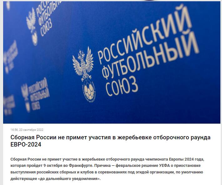 按照计划,本次抽签将于10月9日在法兰克福举行。俄罗斯足协此举是因为欧足联此前决定暂停俄罗斯国家队和俱乐部参加欧足联旗下赛事。