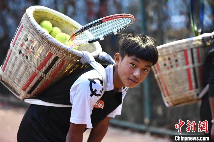 手握球拍全神贯注的发球、扣球,每拿下一分都会握紧拳头,吼上一嗓子,给自己加油打气……10月28日,在河北省廊坊市野象网球俱乐部,“背篓少年”王发正和一群大山里走出来的网球少年们认真训练。 今年8月底,在2022年中国青少年网球巡回赛广州站,王发一举夺得U14男子组单打冠军。黝黑的皮肤、俊朗的笑容,加上一个颇具民族特色的背篓,王发被人们亲切地称为“背篓少年”。