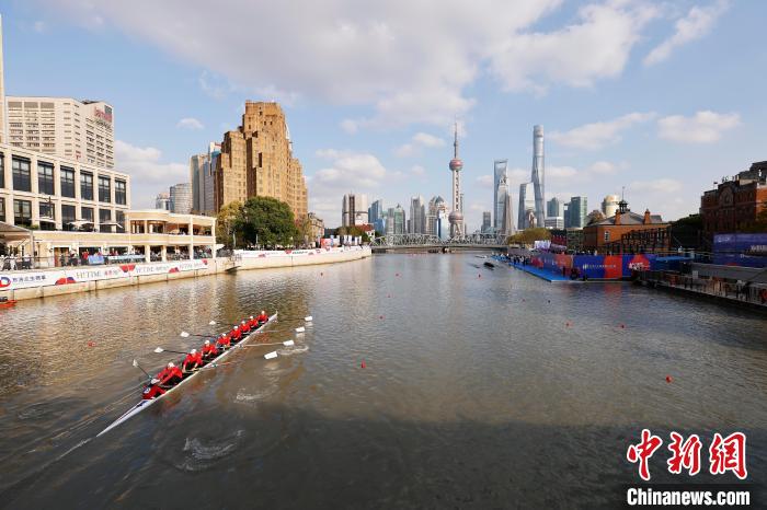“加油,加油,加油……”29日,上海苏州河域热火朝天,以“艇力重燃”为口号的2022上海赛艇公开赛正展开角逐。