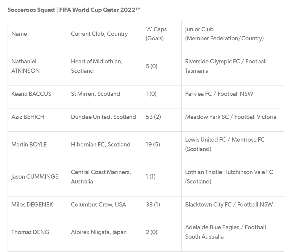 8日,澳大利亚足协公布了征战卡塔尔世界杯的国家队26人大名单。本次比赛澳大利亚与法国、丹麦、突尼斯同组。