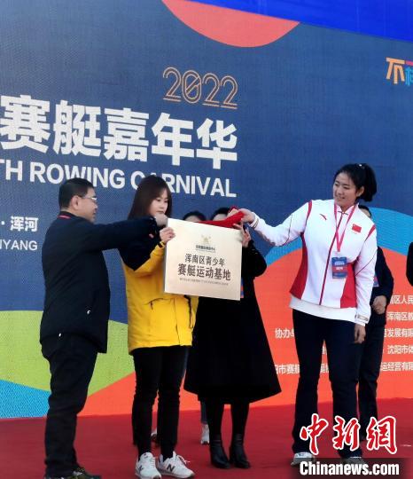 赛艇奥运冠军崔晓桐在中小学赛艇嘉年华开幕式上为“浑南区青少年赛艇运动基地”揭牌。 赵桂华 摄