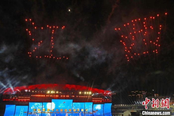 11月8日晚,江西省第十六届运动会在九江市体育中心公园主体育场开幕。 刘力鑫 摄