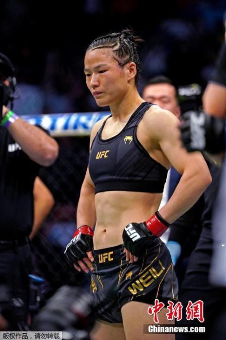 资料图:2020年3月8日,中国首位UFC冠军张伟丽在美国拉斯维加斯举行的UFC248站女子草量级世界冠军卫冕战上,在五个回合里以点胜击败波兰选手乔安娜,成功卫冕。