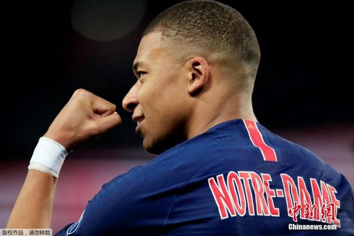 资料图:2019年4月22日,法甲第33轮展开一场较量,巴黎圣日耳曼主场迎战摩纳哥,姆巴佩上演帽子戏法,最终大巴黎主场3比1击败摩纳哥,提前五轮实现卫冕。