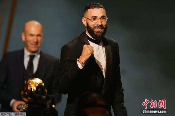 资料图:当地时间10月17日,2022年金球奖最终获奖结果揭晓,效力皇家马德里的35岁法国球员本泽马获得2022年金球奖,这是本泽马职业生涯第一次收获这一奖项。