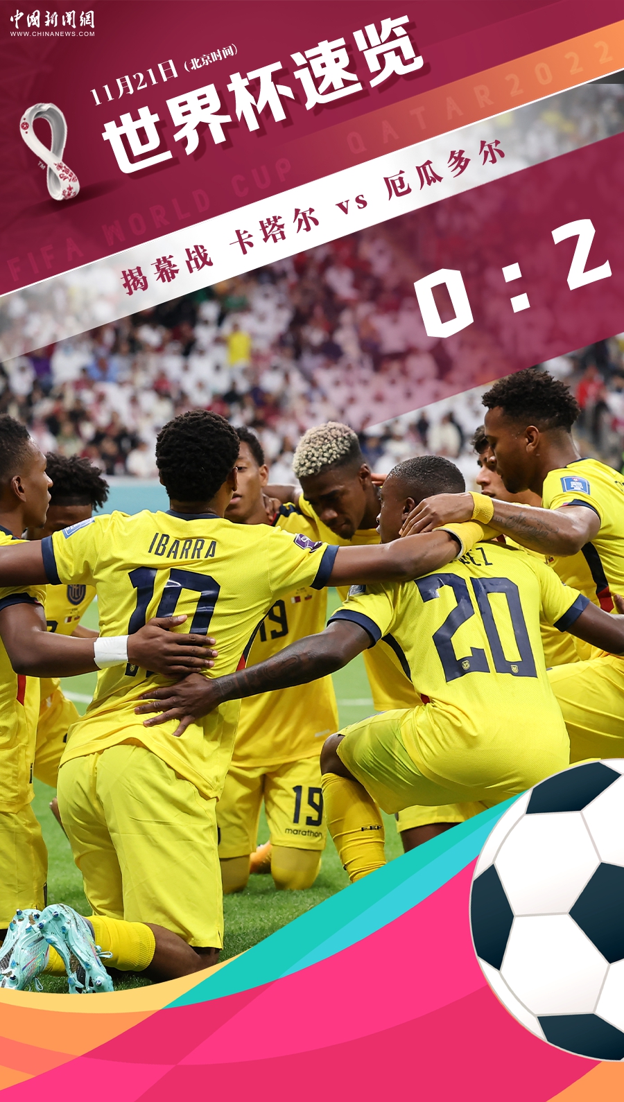 四年等待,世界杯终于来了! 北京时间21日凌晨零点整,随着揭幕战准时开场,2022年卡塔尔世界杯正式起航。凭借瓦伦西亚的两粒进球,厄瓜多尔2:0击败卡塔尔,世界杯揭幕战东道主不败的纪录自此作古。