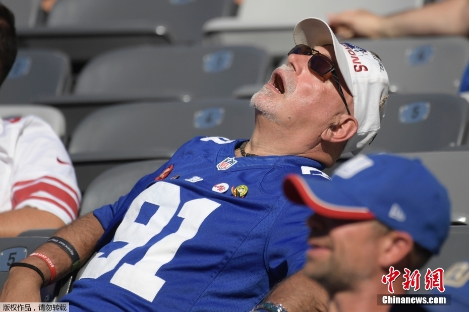 资料图:美国新泽西州,一名纽约巨人队球迷在比赛中睡觉。(图文无关)