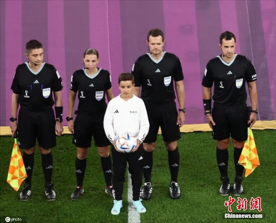 图为女性裁判弗拉帕特(左二)在本场比赛担任第四官员,她也成为了首位亮相世界杯舞台的女性裁判。图片来源:ICphoto
