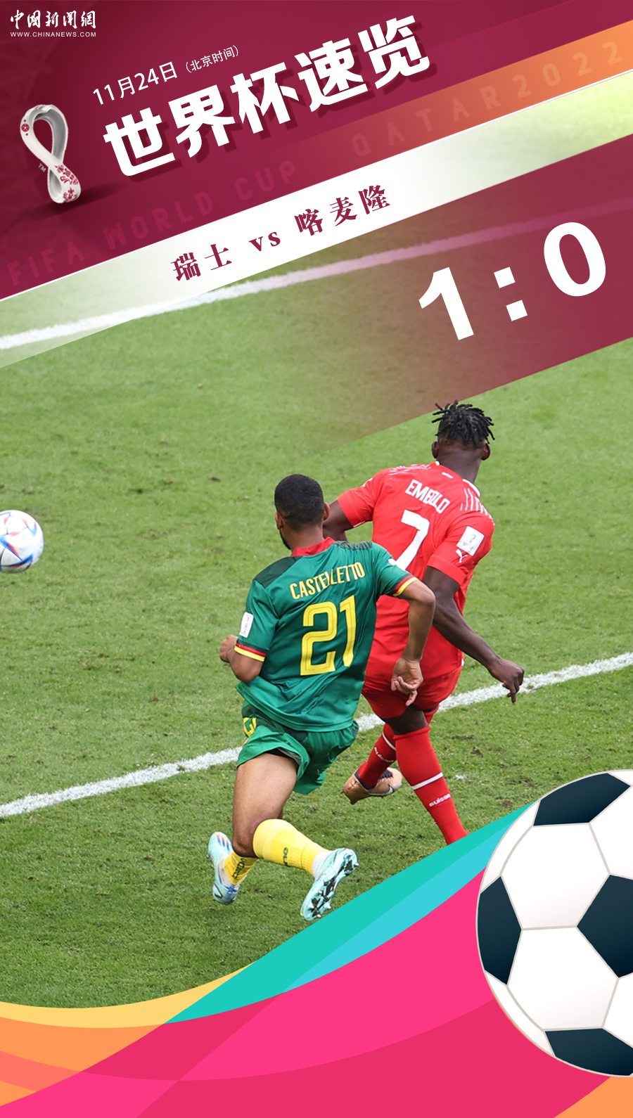 北京时间24日晚,2022卡塔尔世界杯G组小组赛第一轮,瑞士对阵喀麦隆的比赛在贾努布体育场进行。凭借下半场恩博洛的包抄破门,瑞士队以1:0战胜对手,取得本届世界杯的开门红。