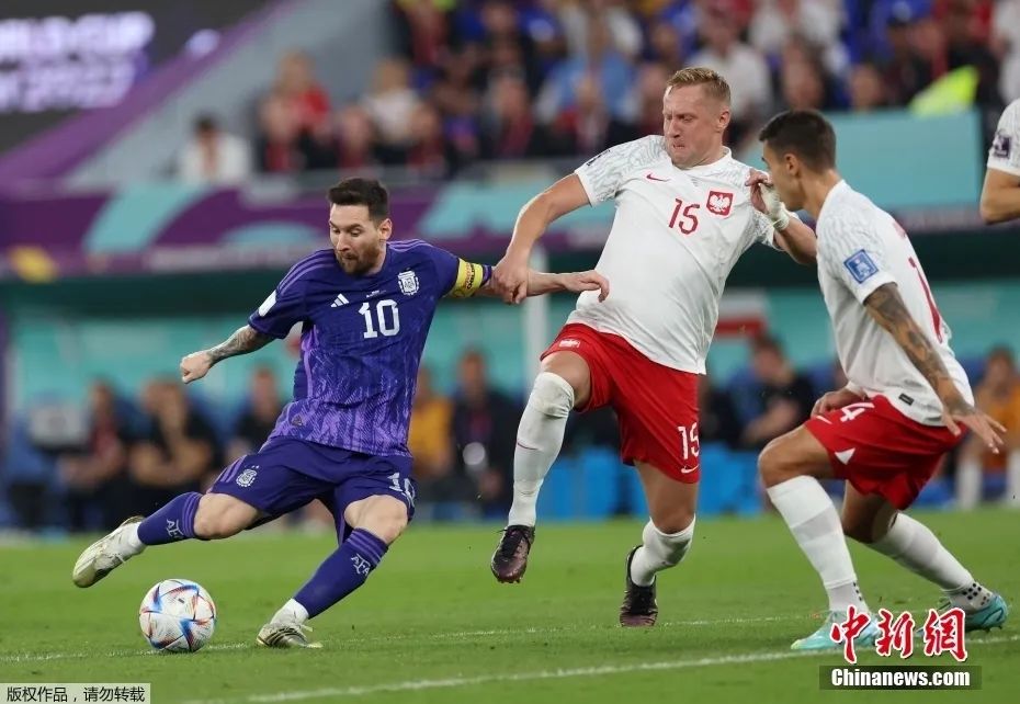 在与波兰的比赛中,阿根廷队主帅斯卡洛尼对首发阵容进行多处调整,包括上轮取得进球的恩佐-费尔南德斯等四人先发登场。阵容调整后效果立竿见影,阿根廷队在进攻端的表现明显好于前两场。 上半时比赛几乎等同于半场攻防,阿根廷队完全掌控着比赛节奏,不断在对方腹地制造威胁,波兰队门前险象环生。阿根廷队半场射门数多达14次,其中9脚射正,但被波兰队门将什琴斯尼一一化解。 第38分钟,梅西在禁区内争顶时被什琴斯尼单掌击中脸部,当值主裁在回看VAR后判罚点球。然而梅西主罚的点球被什琴斯尼扑出,阿根廷队错失领先机会。 场面被动的波兰队在中场休息时调整阵容试图加强反击,但丢球打乱了他们的部署。下半时开场仅1分钟,莫利纳右路传中,麦卡利斯特中路跟进破门,将场上比分改写为1:0。 领先后的阿根廷队踢得更加游刃有余。第67分钟,恩佐-费尔南德斯助攻阿尔瓦雷斯得分,阿根廷队2:0扩大优势,这一比分也保持到了终场。 随着C组和D组小组赛全部结束,八分之一决赛又产生了两组对阵: 12月4日 3:00 阿根廷vs澳大利亚 12月4日 23:00 法国vs波兰
