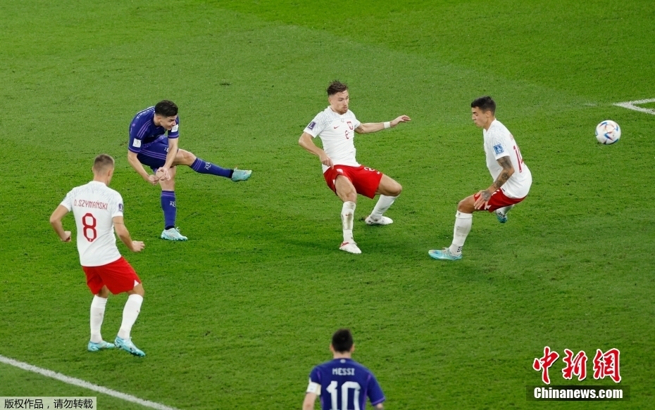 上半时比赛几乎等同于半场攻防,阿根廷队完全掌控着比赛节奏,不断在对方腹地制造威胁,波兰队门前险象环生。阿根廷队半场射门数多达14次,其中9脚射正,但被波兰队门将什琴斯尼一一化解。