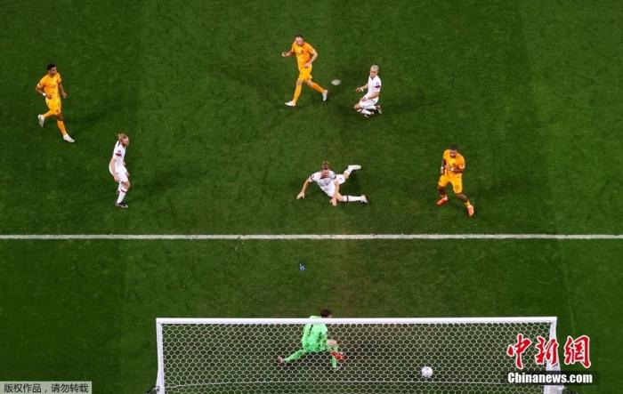 北京时间12月3日,卡塔尔世界杯八分之一决赛,荷兰队对阵美国队的比赛正式打响。图为荷兰队(橙)攻入第二粒进球瞬间。