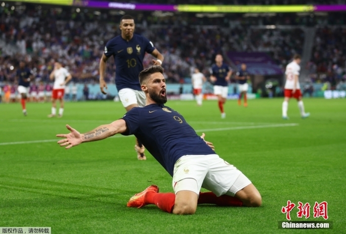 今天凌晨结束的卡塔尔世界杯八分之一决赛,法国队对阵波兰队的比赛中,36岁老将吉鲁为球队首开纪录,他也以52粒国家队进球,超越名宿亨利加冕法国队射手王。