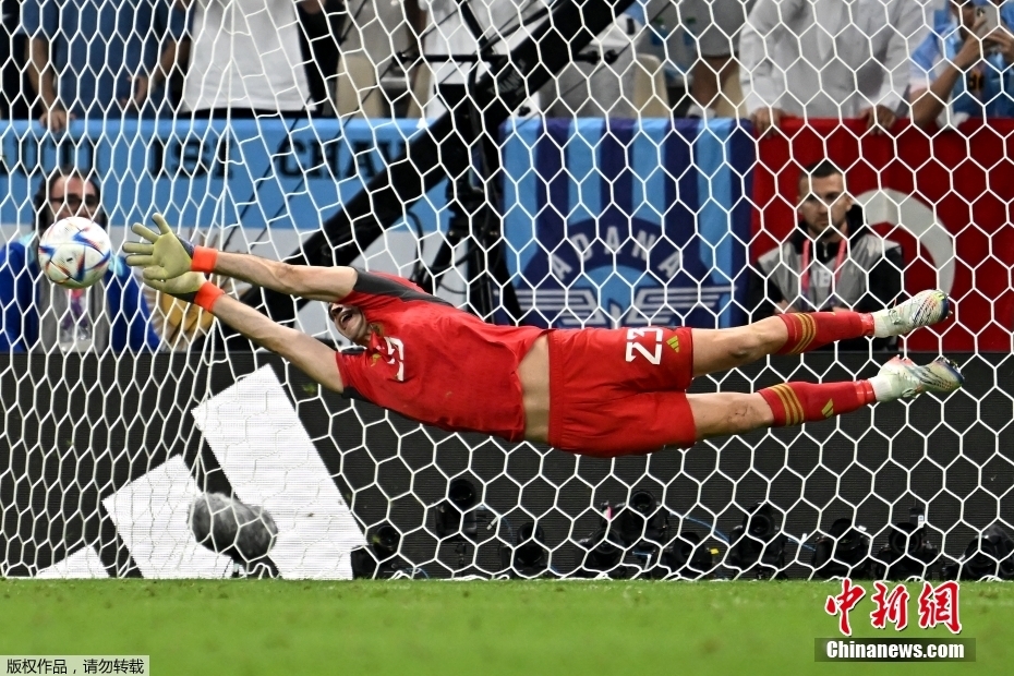 飞向梦想 点球大战中,阿根廷门将达米安·马丁内斯扑出对手两粒点球。赛后梅西跑向队友,二人紧紧相拥。 “我们已经闯进了半决赛,因为我们有无限的激情和强大内心。”马丁内斯如是说道。而“进入半决赛”几乎是所有阿根廷队员提到最多的一句话。 卡塔尔世界杯是梅西的最后一次世界杯之旅,他渴望能带领“潘帕斯雄鹰”捧起大力神杯。如今,他们距离这个梦想,只差2场胜利。